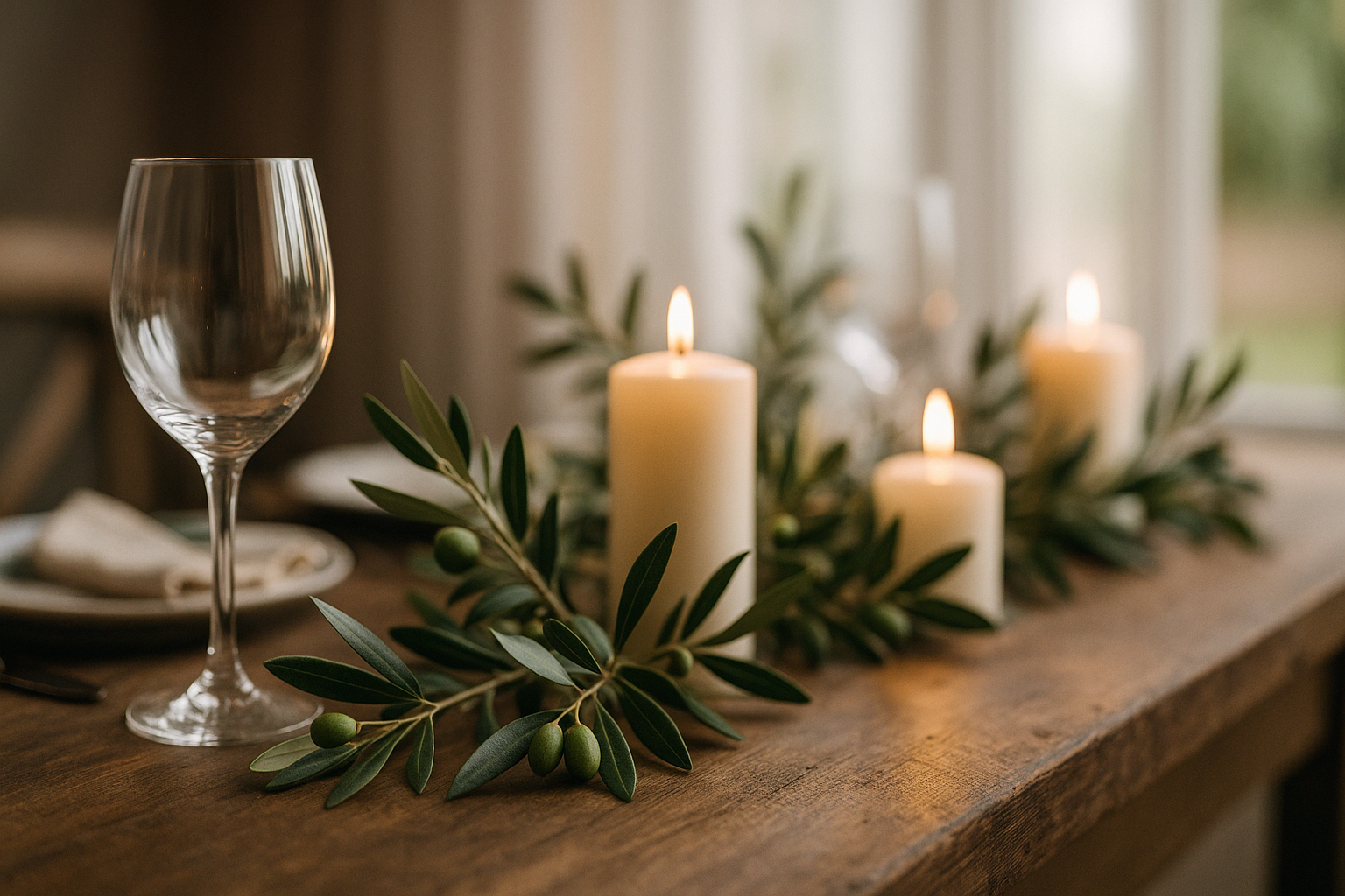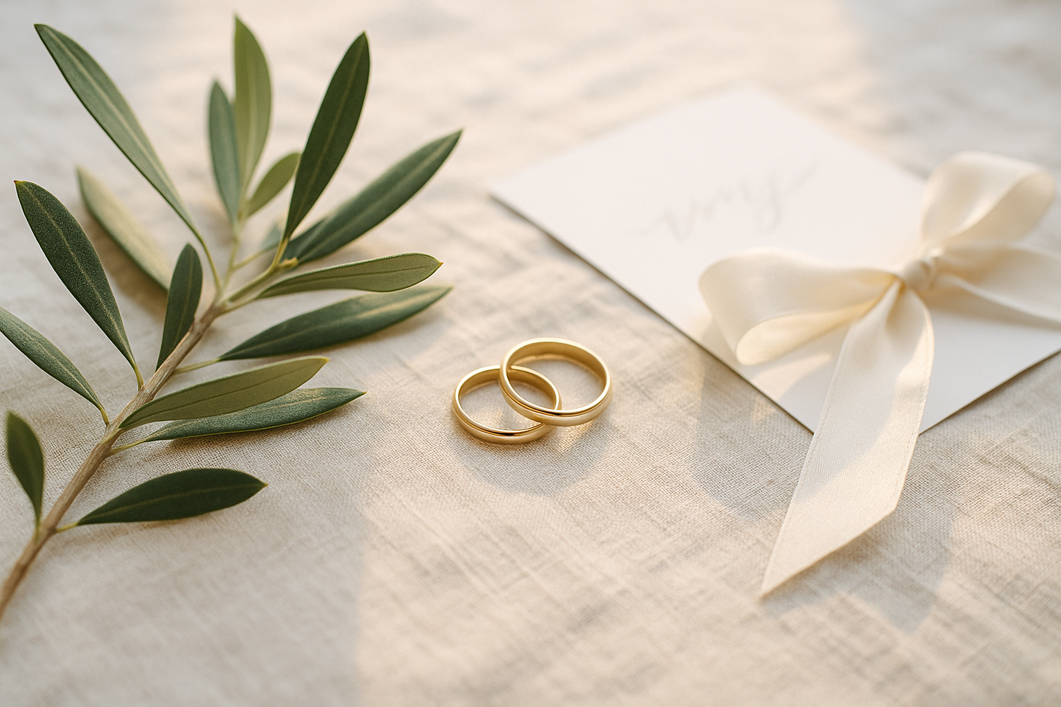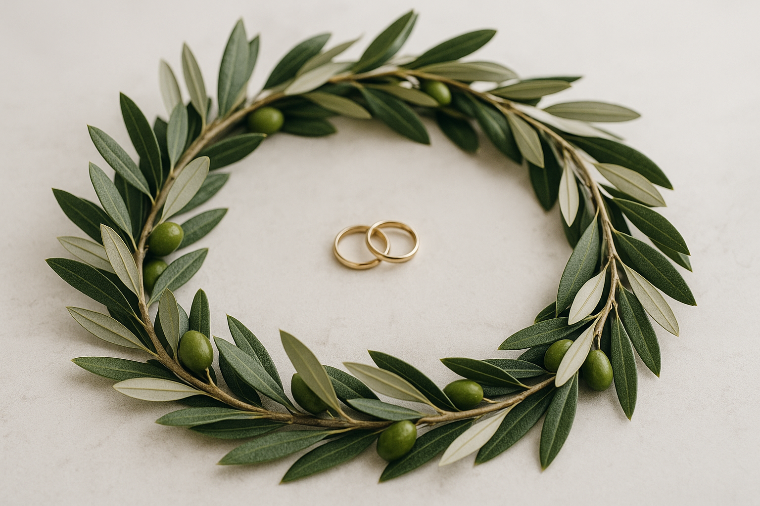 キーメッセージ:「オリーブ=平和と実り」。この一言で世界観を統一すると、装花・ペーパー・ギフトの選定がぶれません。