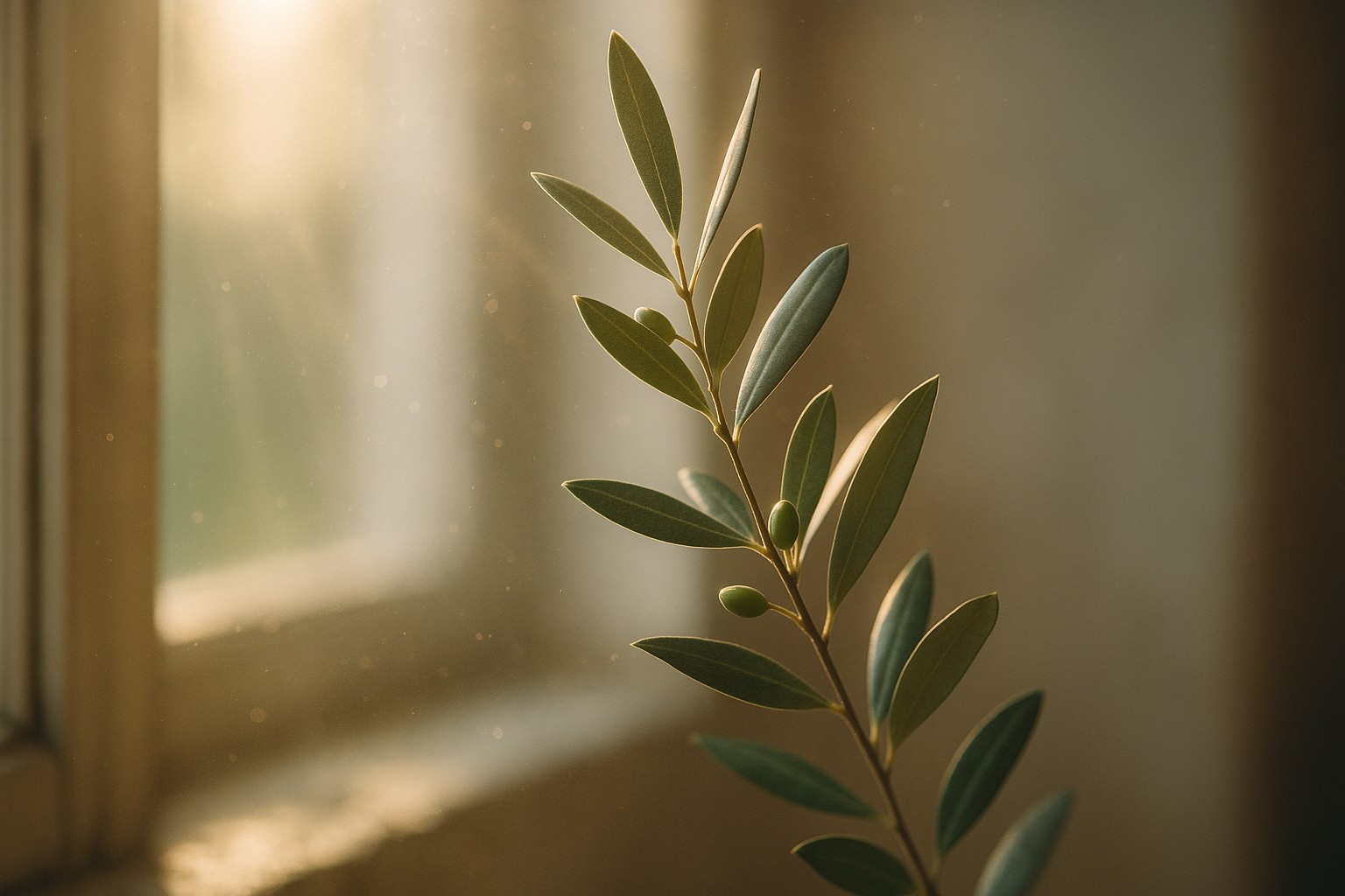 スピリチュアル文脈では、オリーブは持久力(レジリエンス)と実りの象徴。乾燥や風に強い長寿性から、地に足のついた努力・コツコツ継続を暗示します。