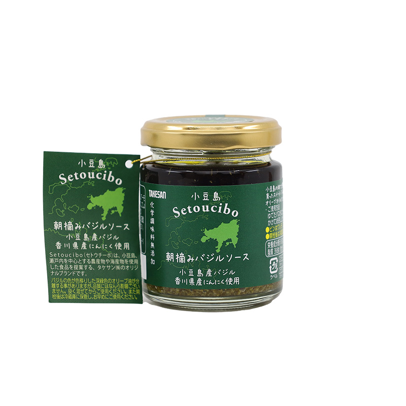 小豆島産の朝摘みバジルに、オリーブオイルや香川県産にんにくを合わせたバジルソースです。 ジェノベーゼパスタや、肉料理、魚料理のソースとしてご利用頂けます。また、パンに塗ってトーストしても美味しく召し上がれます。